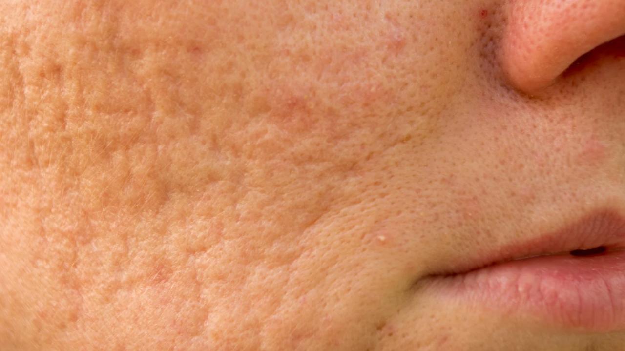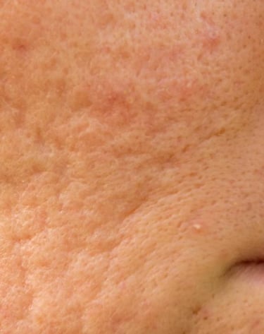 (marcas de acné/poros dilatados)